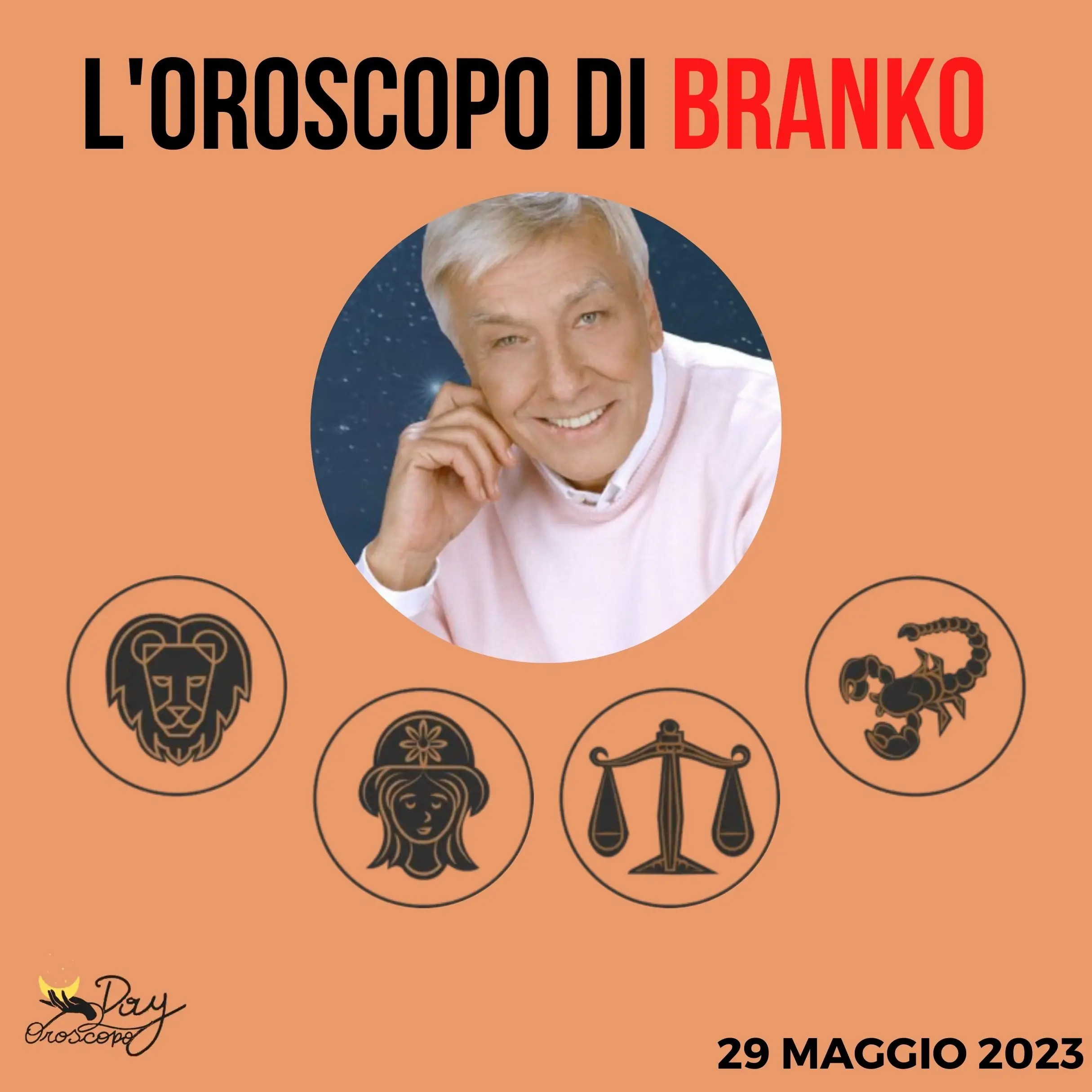 Ecco l’oroscopo di Branko oggi e domani per Leone, Vergine, Bilancia, Scorpione. Disponibile l’oroscopo dell’intero mese: qui l’oroscopo del mese di Paolo Fox e l’oroscopo del mese di Branko.